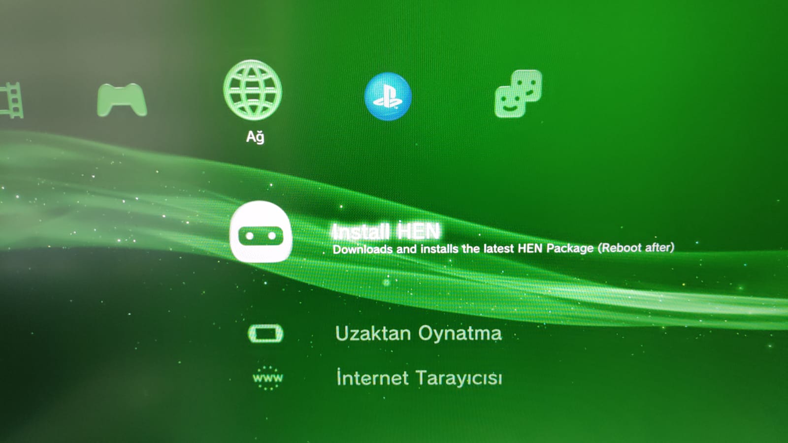 Oyun bölümüne gelen Enable HEN ' i çalıştırın ve tarayıcıyı kapat diye bir uyarı verince kapat diyerek çıkın.